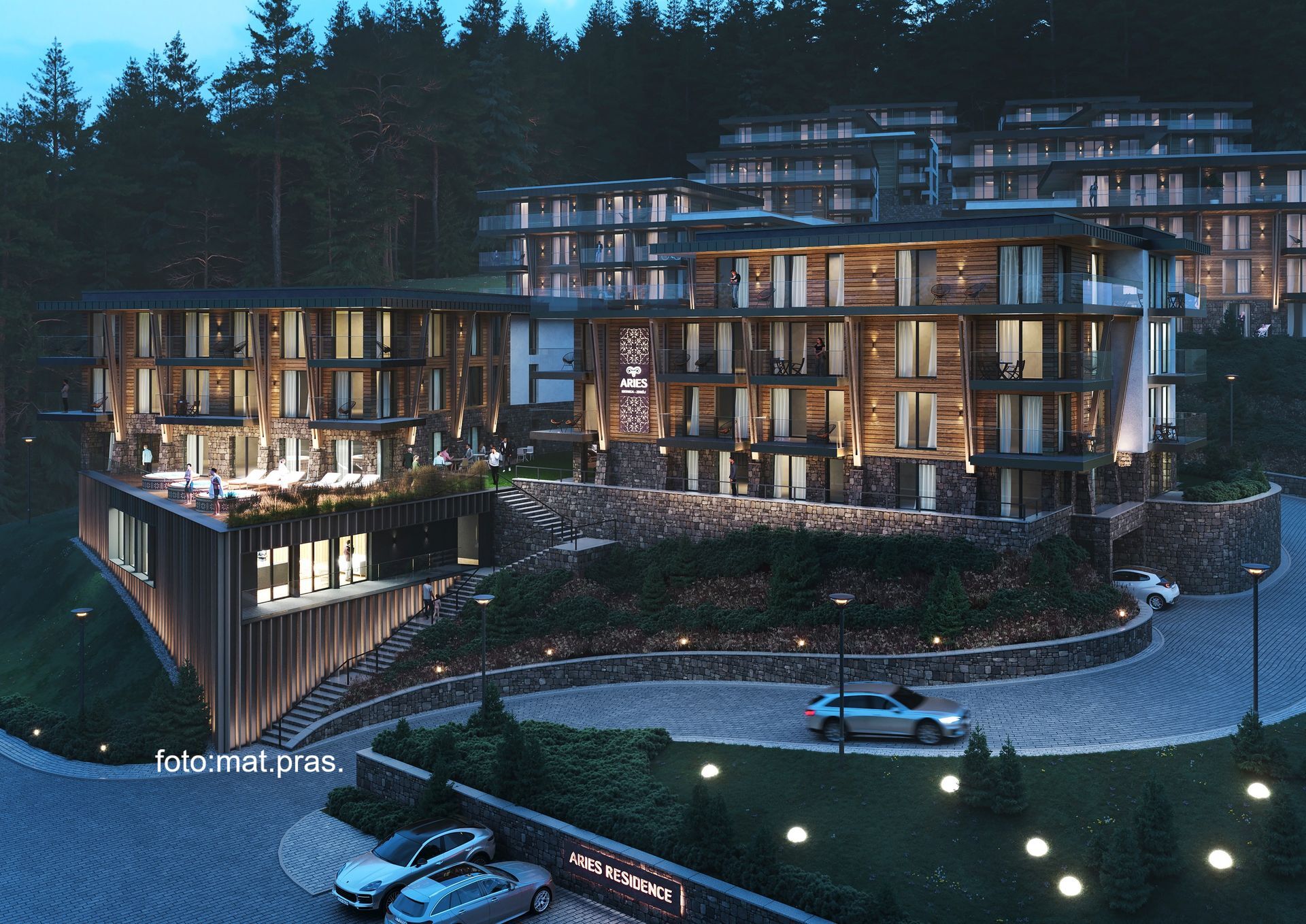 Aries Residence w Krynicy – Zdrój to zespół 10 butikowych apartamentowców realizowanych na wprost Jaworzyny Krynickiej, w otulinie sosnowego lasu z wyjątkowym widokiem na beskidzkie szczyty. Krynica – Zdrój to jeden z najbardziej znanych kurortów górskich nazywany „Perłą Polskich Uzdrowisk”. Rocznie przyciągający swymi atrakcjami ponad 1 mln turystów z Polski i zagranicy. Lokalizacja inwestycji zapewni gościom możliwość korzystania z licznych aktywności sportowych jak i wydarzeń kulturalnych przez cały rok